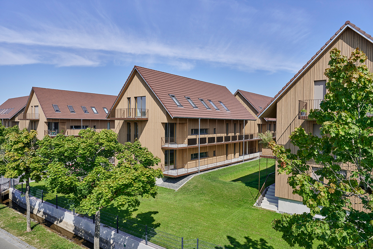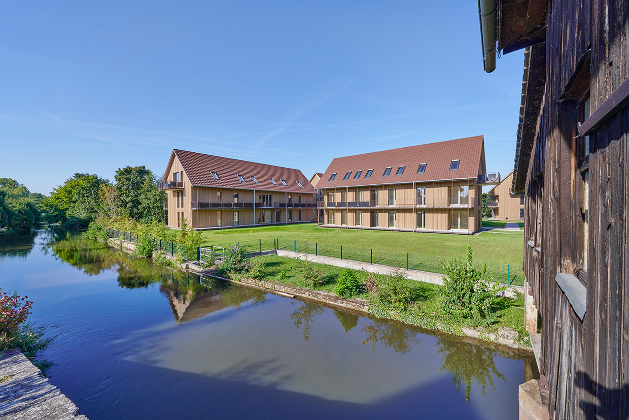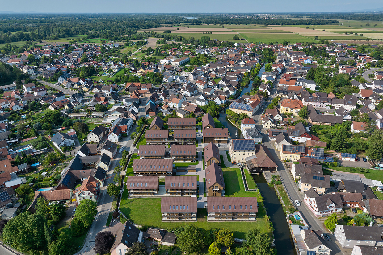 Auf dem Areal der ehemaligen Kunzmühle und des Sägewerks in Kappel-Grafenhausen entstand in einzigartiger Lage auf einer Elzinsel ein neues Wohnquartier. Nach dem Rückbau der Bestandsgebäude wurden fünfzehn moderne Wohnhäuser mit insgesamt 71 Mietwohnungen umgesetzt.