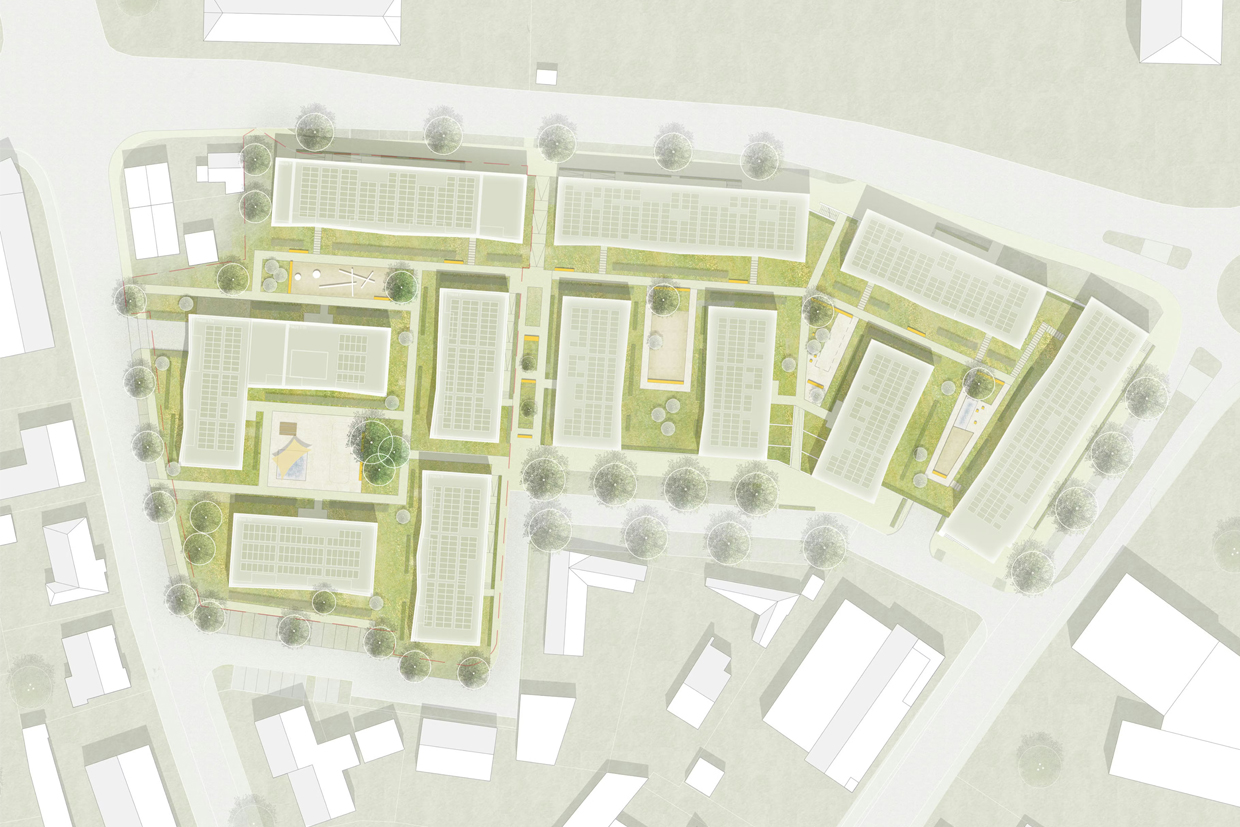 Mit dem Beginn des zweiten Bauabschnitts entsteht ein neues Quartier: Wohlproportionierte Höfe, lebendige Zwischenräume und gefaltete Fassaden schaffen Charakter und Atmosphäre. Die Freiräume verbinden die Gebäude harmonisch, bieten private Gartenbereiche und geschützte Nachbarschaftshöfe.