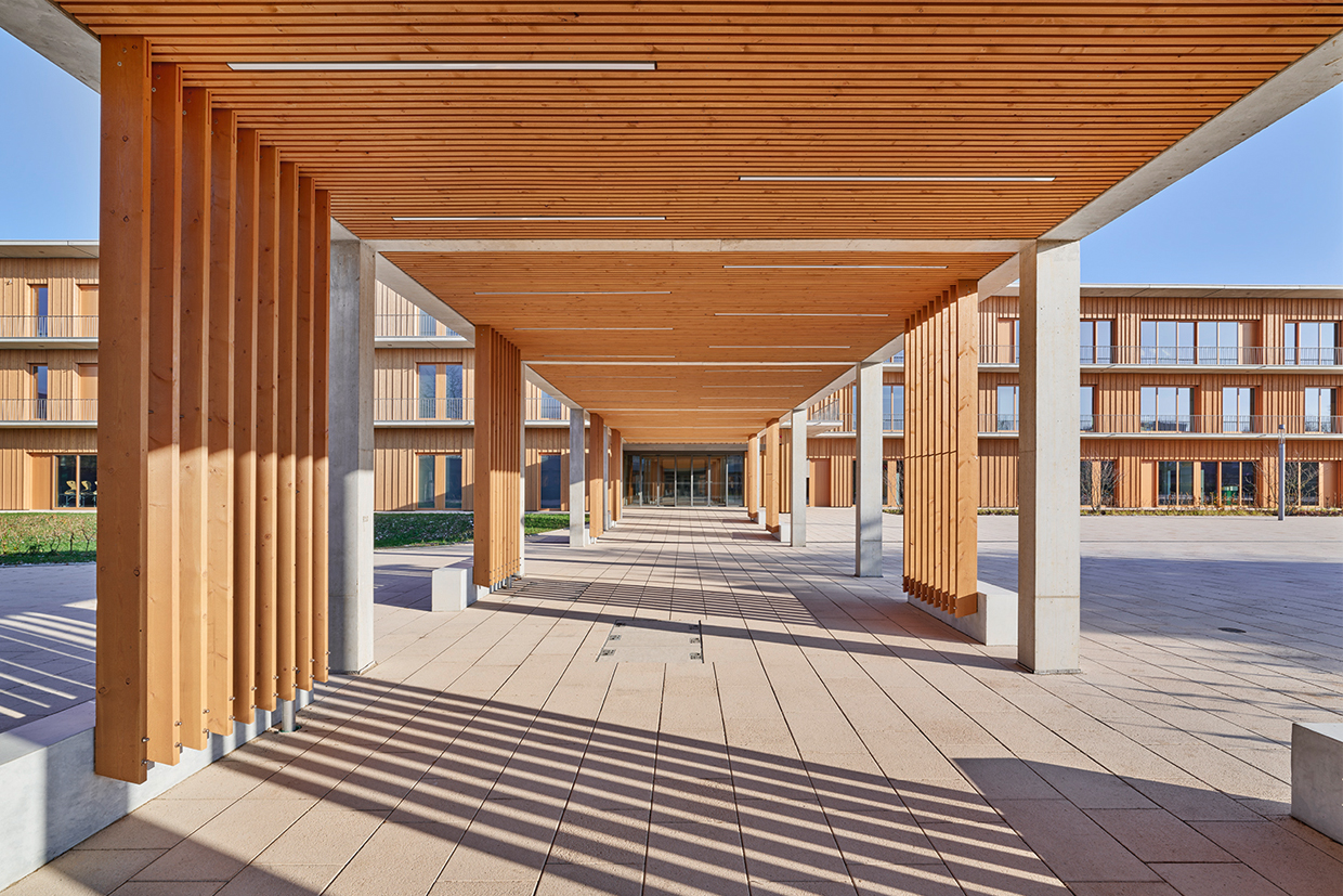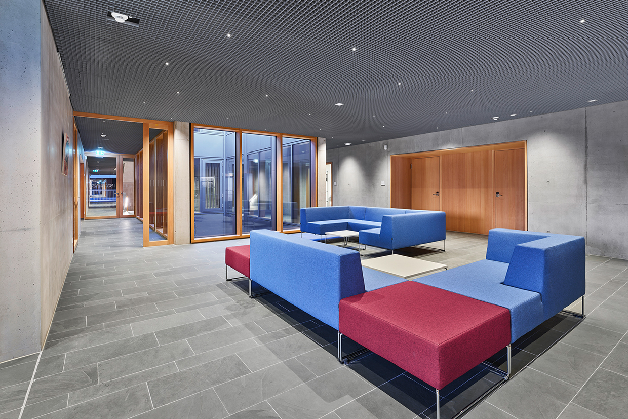 Die massive, tragende Skelettstruktur einerseits, die Flexibilität durch nichttragende Zwischen- und Ausbauelemente andererseits, erlaubt es auch zukünftig auf neue pädagogische Konzepte zu reagieren.